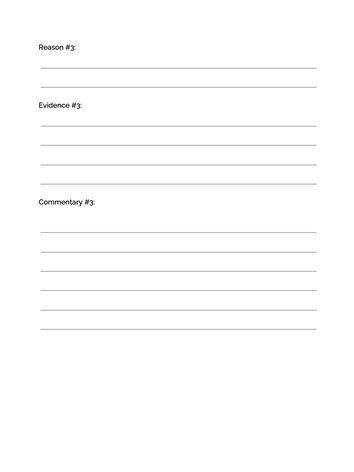 When moving into the body paragraph, students began to look at their reasons individually. They used the articles about dystopias, the video, and the text of The Hunger Games itself to identify evidence that supported the reason they identified. Once they identified evidence, they began to build their commentary to explain how their evidence supports their reason and how the reason supports their claim. They put these elements together to create a clean and coherent body paragraph.